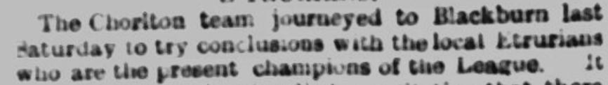 • Champions of 1893-94 were Blackburn Etrurians, as confirmed by a newspaper report in a game the following season: